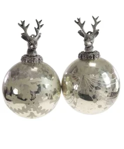 Baumschmuck Hirsch Hirschgeweih silber Glaskugel Schliff 2er Set