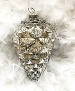 Baumschmuck Zapfen Eichel Bauernsilber Glas silber antik 15 cm