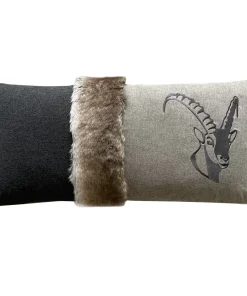 Edles besticktes Chalet Kissen Springbock grau taupe mit Webpelz 70×35 cm