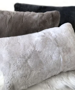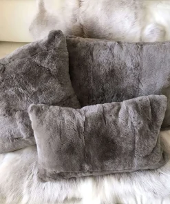 Luxus Kissen Hase echt Fell Hasenfell Kaninchen grau 30×50 cm