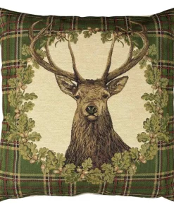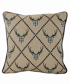 Chalet Kissen Hirschgeweih Hirschkopf beige Gobelin mit Webpelz 55 cm