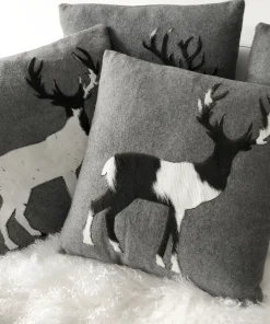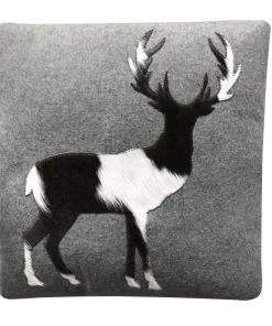 Chalet Kissen Hirsch grau springend aus Kuhfell und Wolle 45 cm