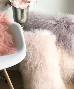 Edles Chalet Herzkissen Samt beige nude mit Webpelz Fell 41 cm