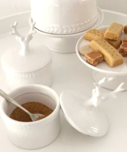 Hirschdose mit Deckel weiss Keramik Zuckerdose Hirsch