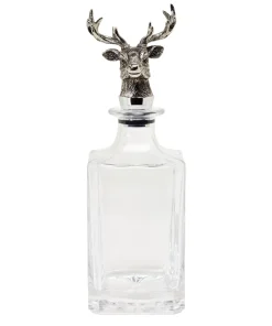 Glas Karaffe Hirsch quadratisch 26 cm Hirschkopf edel versilbert