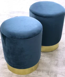Hocker Sitzhocker silber Nickel mit Kuhfell grau modern edel