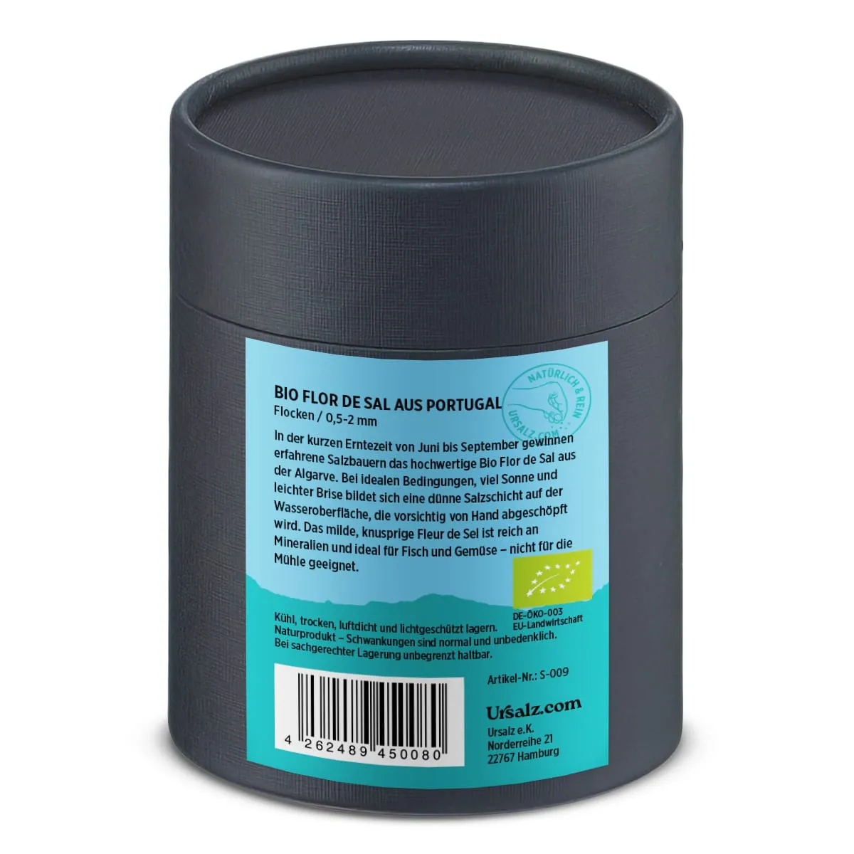 Bio Flor de Sal Flocken ist ein hochwertiges Meersalz, das in Salzgärten an der Wasseroberfläche entsteht. Es wird per Hand abgeschöpft und gilt aufgrund seines milden Geschmacks und seiner knusprigen Textur als besonderes Gourmetsalz.