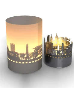 Mit dem Birmingham Geschenketube wird aus einem ganz gewöhnlichen Teelicht ein zauberhaftes Lichtspektakel. Der Birmingham Geschenketube zeigt Ihnen die Skyline sowie die besonderen Merkmale der Stadt auf eine Weise, wie Sie Birmingham bestimmt noch nie betrachtet haben. Durch das Flackern der Kerze erwacht die Silhouette der Skyline zum Leben und projiziert die schönsten Gebäude und Sehenswürdigkeiten von Birmingham als magisches Schattenspiel in den Raum. Der mitgelieferte Projektionsschirm sorgt dafür, dass das Schattenspiel noch eindrucksvoller zur Geltung kommt.