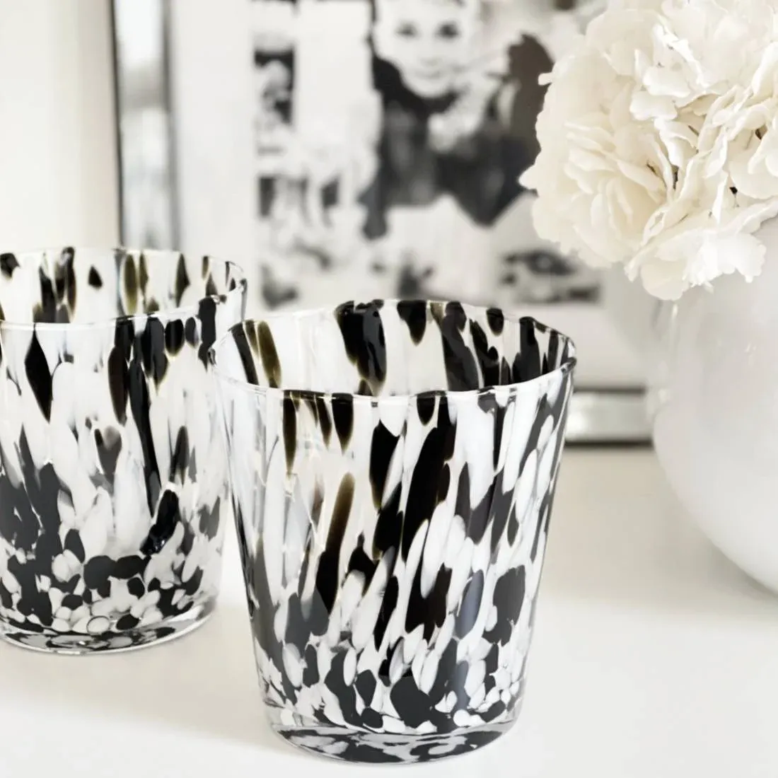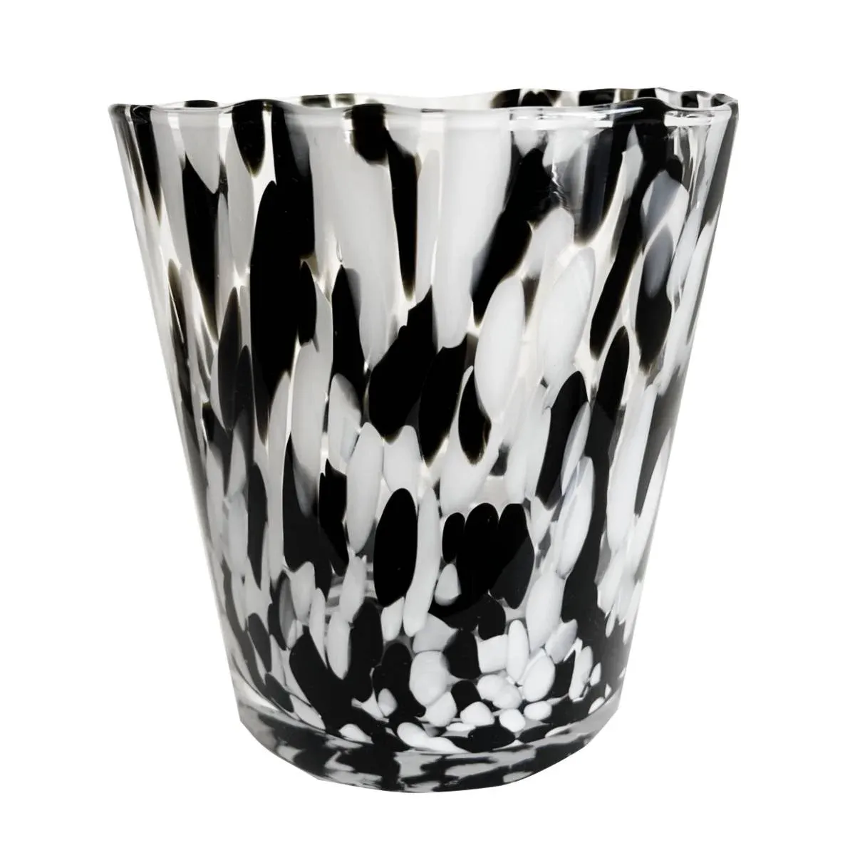 Das schwere Windlicht Teelichthalter auch als kleine Vase verwendbar hat einen Durchmesser von 15 cm und ist 16 cm hoch aus Glas. Ist sehr modern und puristisch gestaltet. Aus Handarbeit mit einem zeitlosem Design in schwarz weiß Muster. Stimmungsvoll, wie das Kerzenlicht durch das schwarz weiß Glas schimmert. Ein trendiger Lifestyle für Ihr schönes Zuhause. Dieses Teelicht ist ein wahrer Hingucker auf Tischen, Regalen, Fenstersimsen und Kaminen. Für tolle Tischdekorationen. Dekotipp: Arrangieren Sie zwei Teelichter Vasen zusammen auf einem Tablett – eine wunderschöne Tischdekoration.