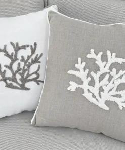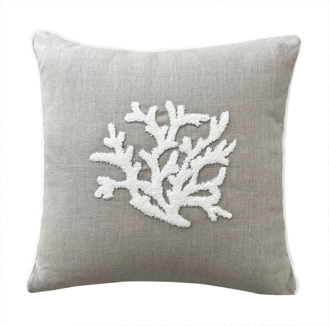Edles Kissen Leinenkissen beige mit bestickter weißer Koralle 45 x 45 cm