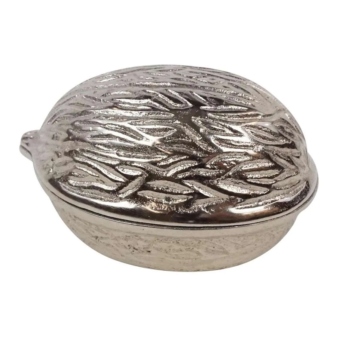 Eine sehr schöne Silberdose in Form von einer Walnuß, in silber Aluminium. Perfekt zur Aufbewahrung von Süßigkeiten, Pralinen und anderen Dingen. Die Walnuss Dose ist auch hochwertigem Aluminium und besteht aus zwei Teilen. Ein sehr hübscher Artikel nicht nur für die Weihnachtszeit.