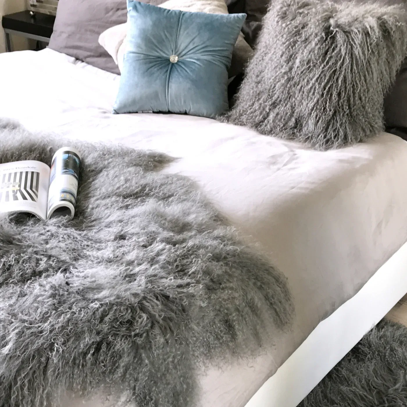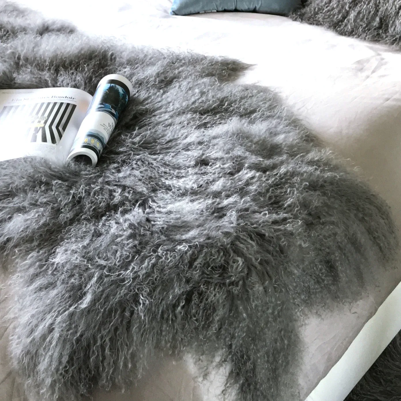 Fell aus echtem Tibet Lammfell mongolisches Lammfell, super weich. Das Tibet Lammfell ist ein sehr edles Lammfell. Es unterscheidet sich zu den anderen Lammfellen durch lange seidenweiche Haare. Die Felle sind nicht so dick wie gewöhnliche Felle. Das Leder ist relativ dünn und leicht – dafür haben sie aber ein sehr weiche flauschige wunderschöne Vorderseite. Man sagt es wäre das Edelfell unter den Lammfellen. Die Grundprodukte aus unserer Kollektion Interieur besteht aus Lammfell von sehr guten Qualität, aus welchem verschiedene Produkte sowie Kissen, Decken, Plaids für Ihr Zuhause hergestellt werden. Super weiche flauschige Wolle – ein besonderes Accesoire für ihr Zuhause oder Garten. Vielseitig einsetzbar. Die Schaffelle eignen sich perfekt für Ihren Lieblingsstuhl, zur dekorieren einer Bank, Sofa aber auch als Bettüberwurf kommen die Felle sehr schön zur Geltung. Wir bringen einen Hauch von Natur und Luxus zu Ihnen nach Hause. Produktinformation: Felle sind Naturprodukte und deshalb ist jedes Stück ein Unikat, wir können keine zwei identische Felle liefern. Geringe Farbabweichungen, kleine Verletzungen, Maßungenauigkiet sind kein Qualitätsmangel. Sie unterstreichen die Echtheit des Natur Materials. Da es sich bei echtem Pelz um ein Naturprodukt handelt, kann es sein, dass bei Temperaturschwankungen die Decke ihre Maße oder die Formen leicht verändert. Eine gewisse Haarlässigkeit lässt sich nicht vermeiden und ist normal. Einstiche oder kleine Löcher auf der Rückseite stellen keine Qualitätsminderung dar, größere Risse wurden fachmännisch vernäht. Pflegehinweise Tibet Lammfell