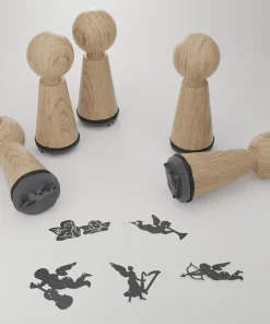 Lieferumfang: Stempelset, bestehend aus 5 verschiedenen Stempeln zum Thema Engel. Die Stempel sind aus hochwertigem Buchenholz gefertigt mit einer Höhe von 36mm und einem Durchmesser von 15mm. Das Stempelgummi ist auf einer federnden Schaumstoffschicht montiert.