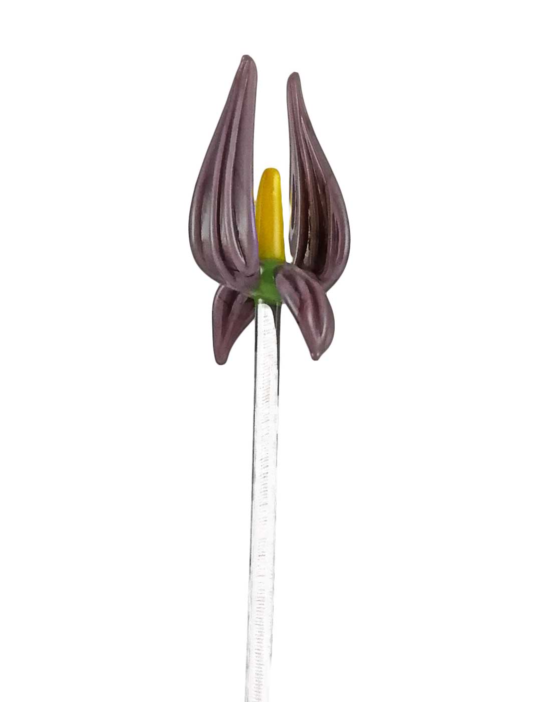 Der ca. 13 cm lange Glasspieß mit einer Lilie eignet sich als Fruchtspieß, Bowlespieß, Cocktailspieß oder zur Dekoration.