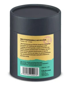 Inka Pyramidensalz ist ein besonderes Gourmetsalz aus Bolivien, das in der Andenregion gewonnen wird. Es bildet pyramidenförmige Kristalle, die durch die natürliche Verdunstung von mineralreichem Quellwasser entstehen. Dieses Salz ist für seine feine Textur und milde Salznote bekannt.