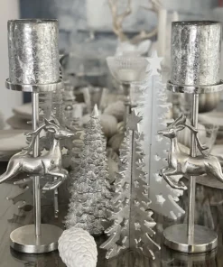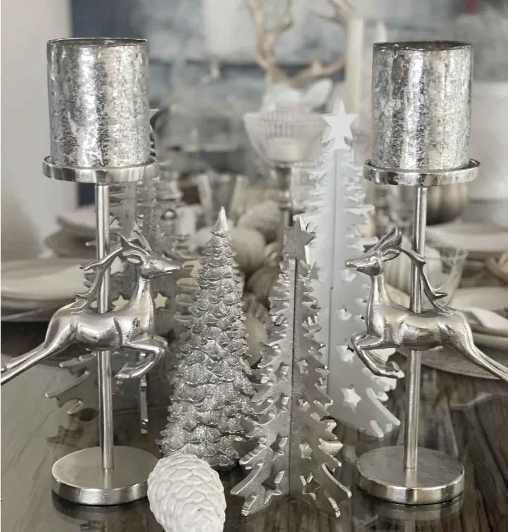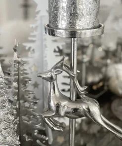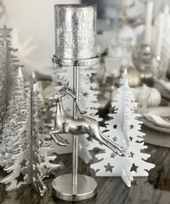 Windlicht Eleganter Springender Hirsch silber auf Ständer – Einzigartiges Designobjekt