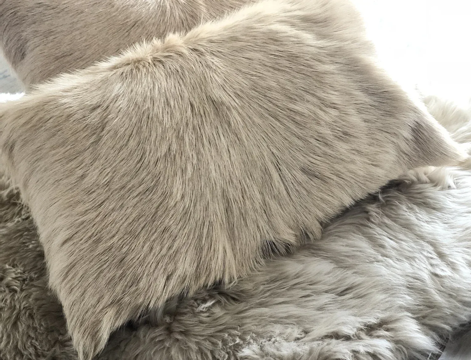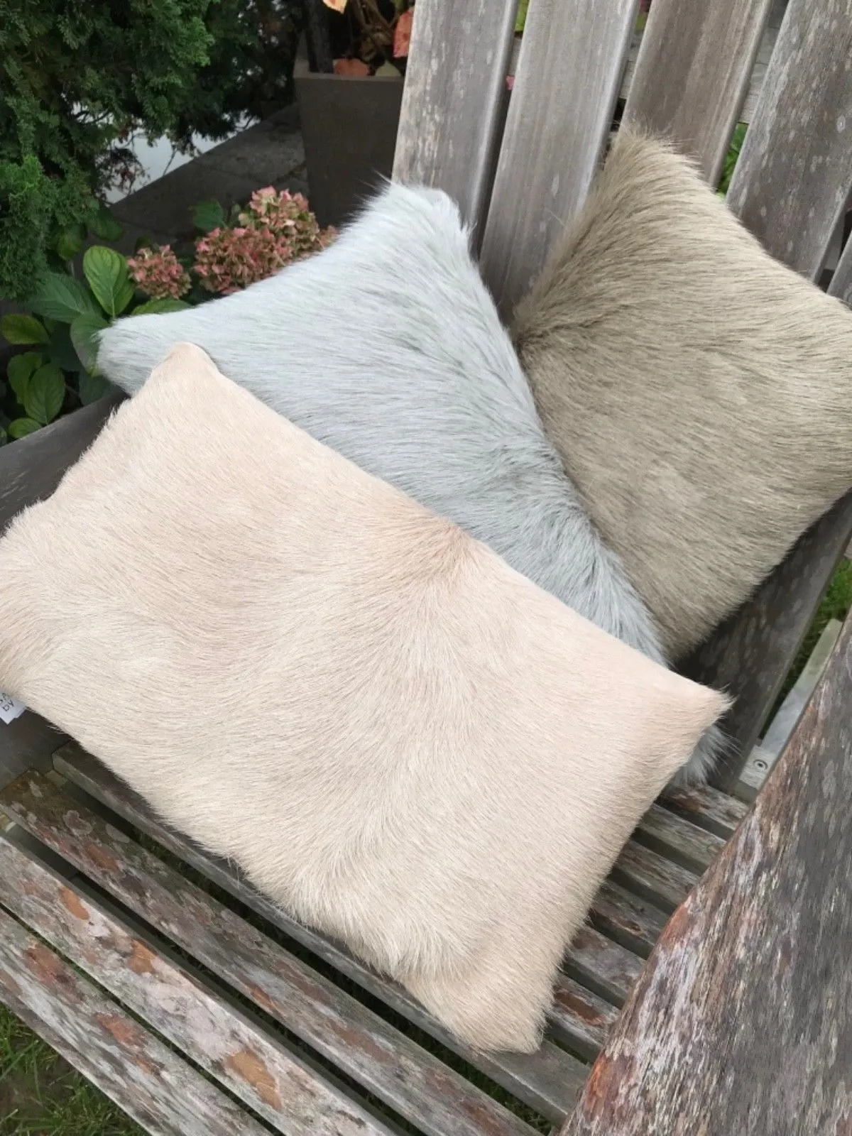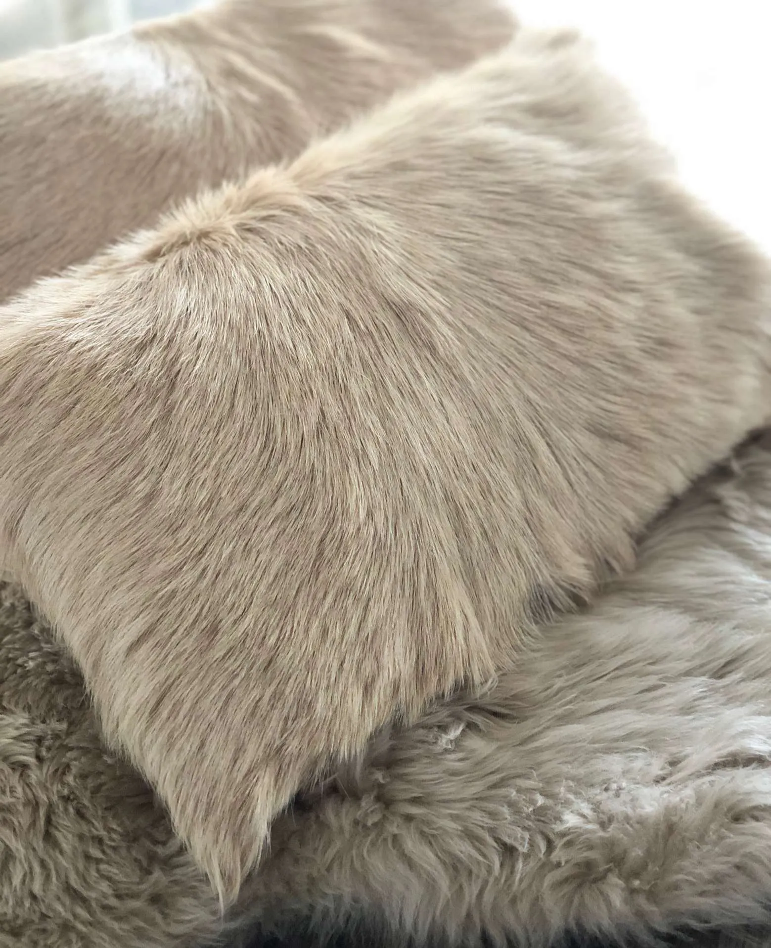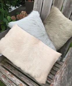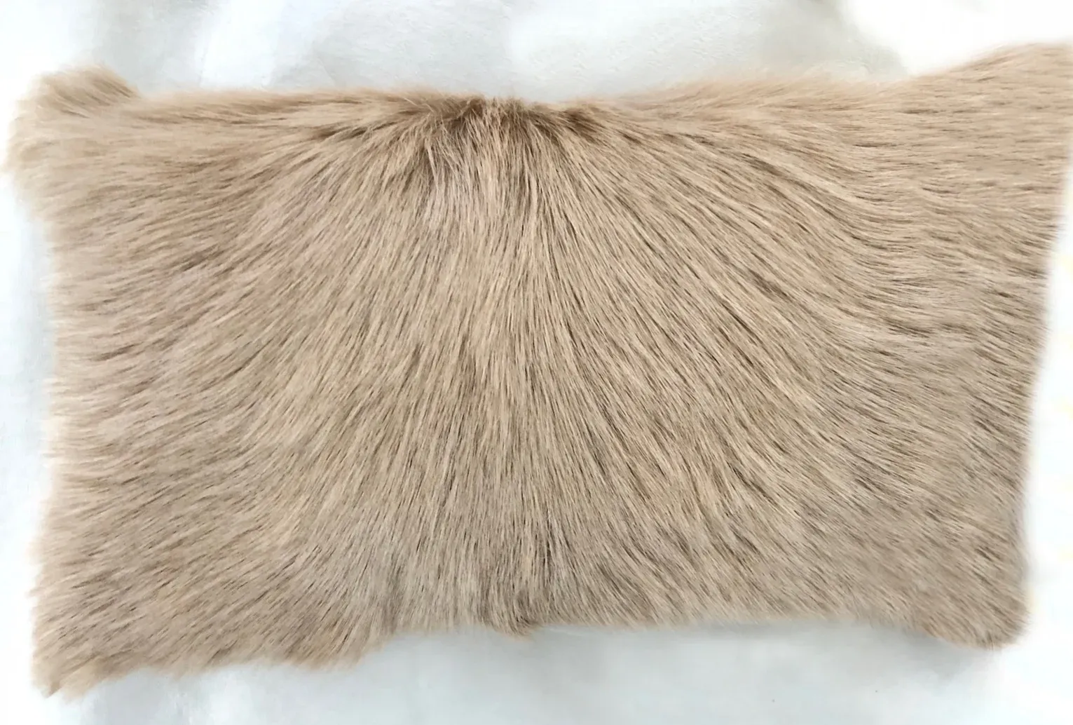 Echtes Ziegenfell Ziegenleder Kissen in creme camel Ton