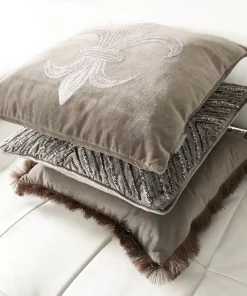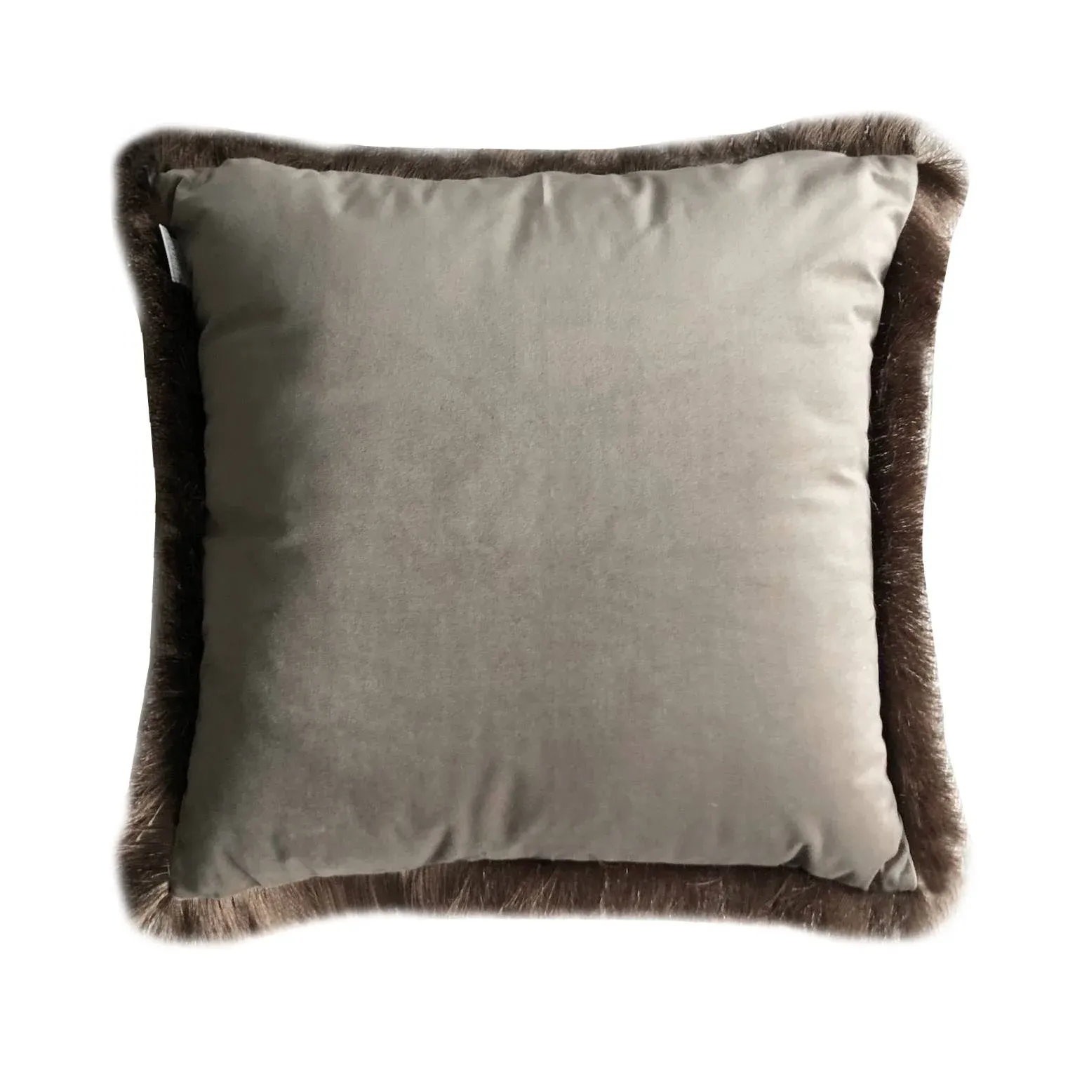 Elegante weiche Luxus Samt-Kissen, edler Stoff in taupe Ton mir Fransen