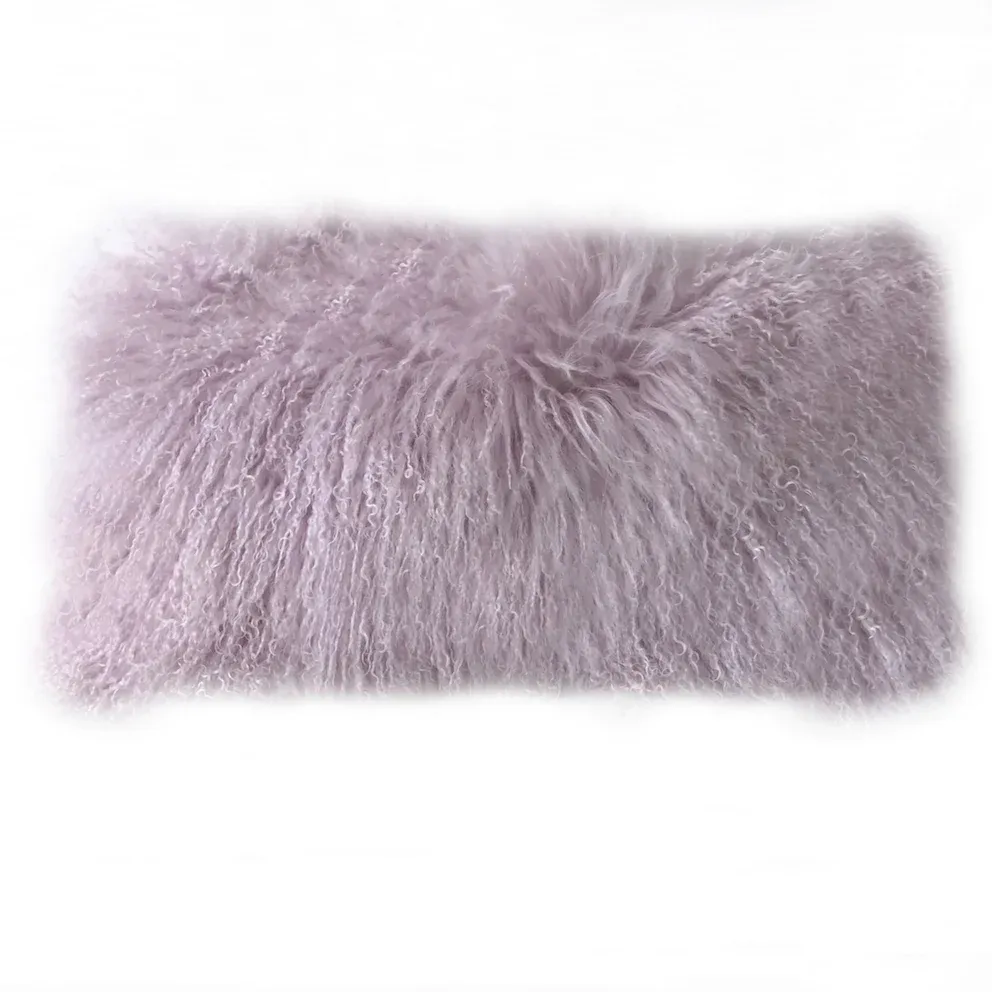Kissen Tibet Lammfell Puder lila flieder 28×56 cm extra weich