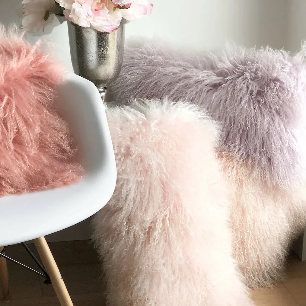 Das Tibet Lammfell ist ein sehr edles Lammfell. Es unterscheidet sich zu den anderen Lammfellen durch lange seidenweiche Haare, die sehr oft gelockt sind. Die Felle sind nicht so dick wie gewöhnliche Felle. Das Leder ist relativ dünn und leicht – dafür haben sie aber ein sehr weiche flauschige wunderschöne Vorderseite. Man sagt es wäre das Edelfell unter den Lammfellen. Dieses schöne Dekokissen paßt zu jeder Stileinrichtung. Arrangieren Sie dieses Kissen wie und wo Sie möchten. Ob als Einzelstück im Sessel oder mehrere zusammen auf dem Sofa, mit diesem Kissen haben Sie in Ihrer Wohnung einen absoluten Hingucker. Zu diesem Kissen gibt es auch das passende Tibet Lammfell (solange der Vorrat reicht) Die Grundprodukte aus unserer Kollektion Interieur besteht aus Lammfell von sehr guten Qualität, aus welchem verschiedene Produkte sowie Kissen, Lammfellteppiche, Decken, Plaids die für Ihr Zuhause hergestellt werden. Super weiche flauschige Wolle – ein besonderes Accesoire für ihr Zuhause oder Garten. Jedes Fell ein Unikat – Handarbeit de Lux. Wir bringen einen Hauch von Natur und Luxus zu Ihnen nach Hause. Felle sind Naturprodukte und deshalb ist jedes Stück ein Unikat, wir können keine zwei identische Kissenfelle liefern. Geringe Farbabweichungen, Maßungenauigkeit sind kein Qualitätsmangel. Sie unterstreichen die Echtheit des Natur Materials. Eine gewisse leichte Haarlässigkeit lässt sich nicht vermeiden und ist normal.