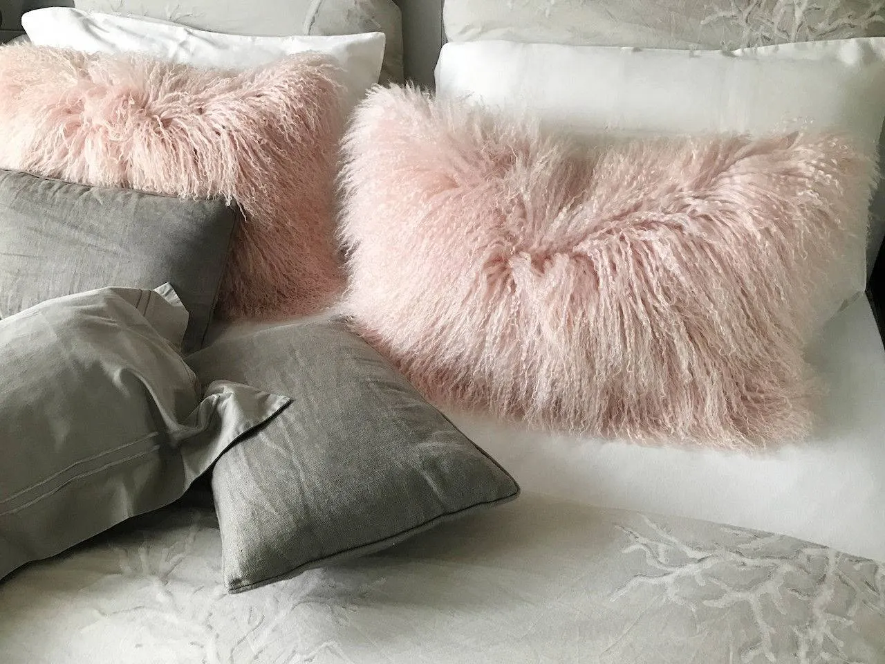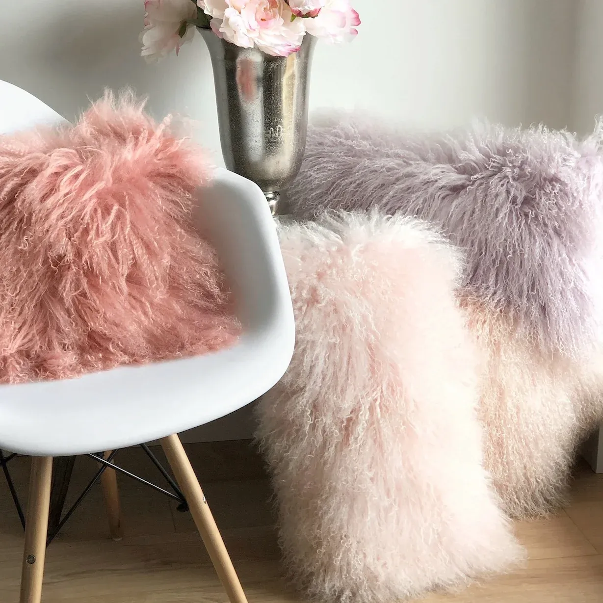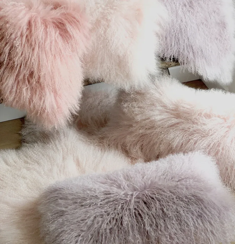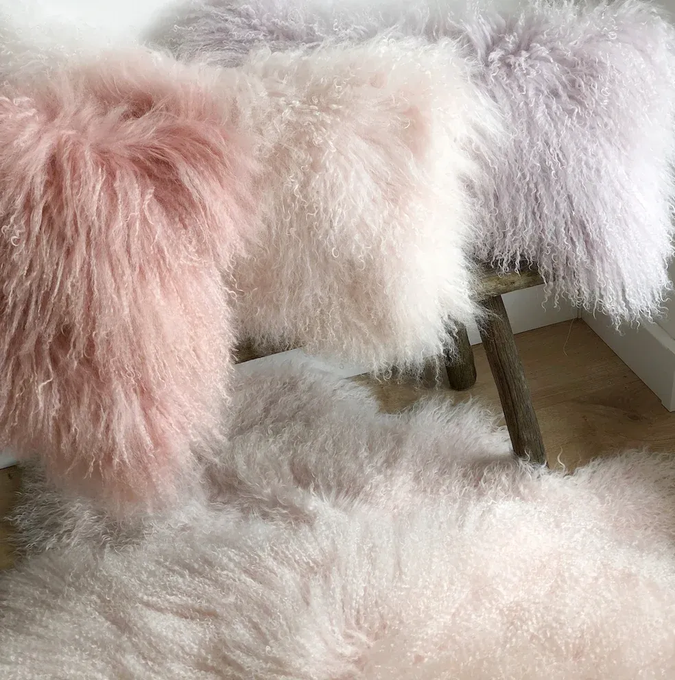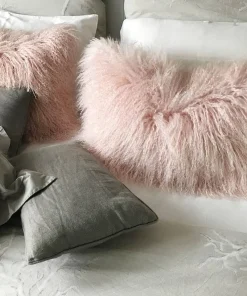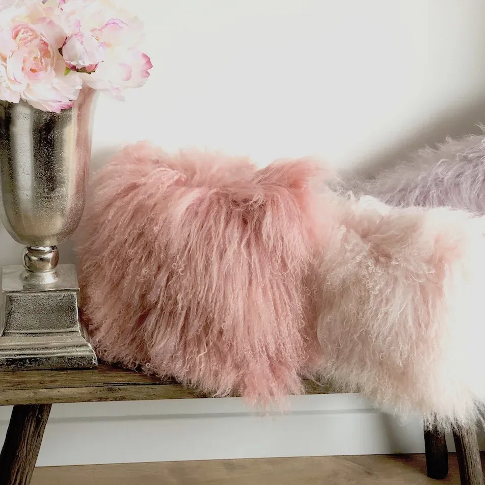 Kissen Tibet Lammfell Puder rosa 28×56 cm extra weich