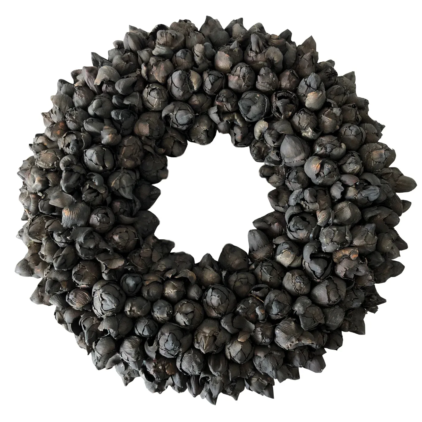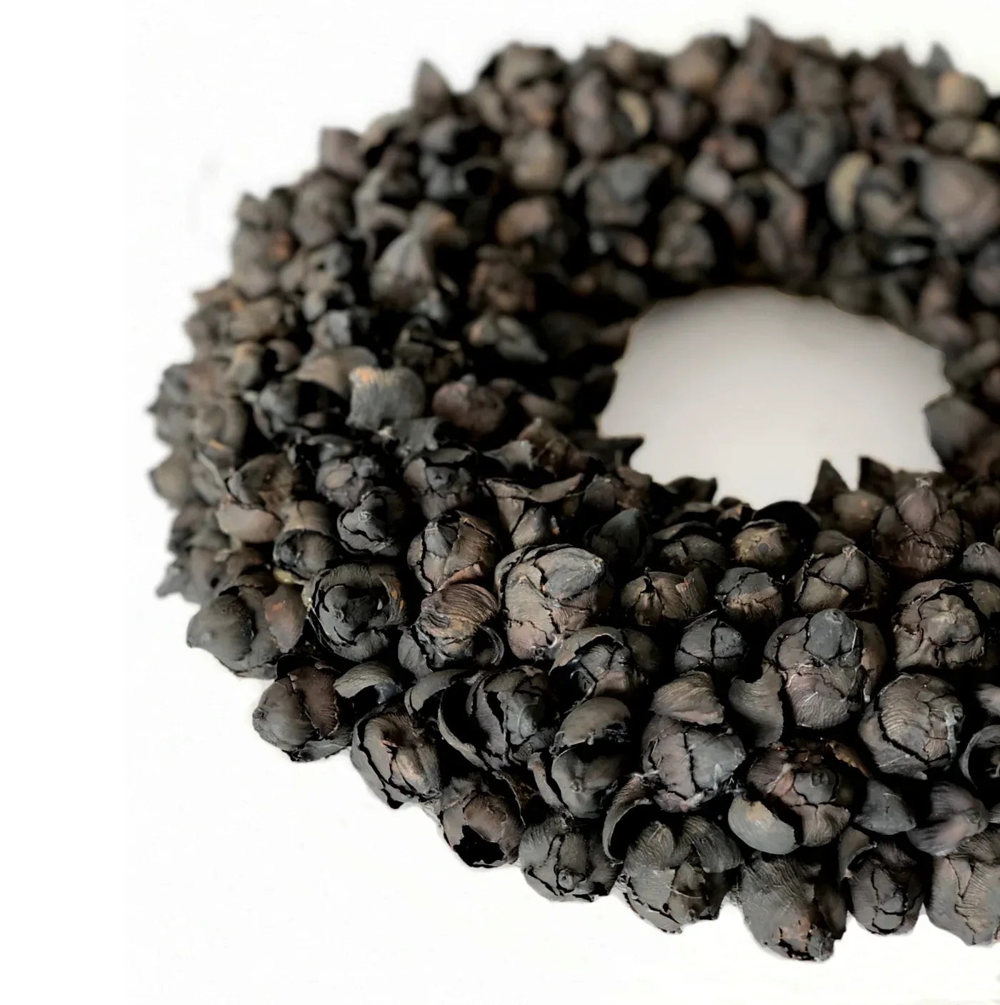 Naturkranz, Kranz aus Knopsen der Kokos-Frucht in schwarz braun Ton ca. Ø 40cm