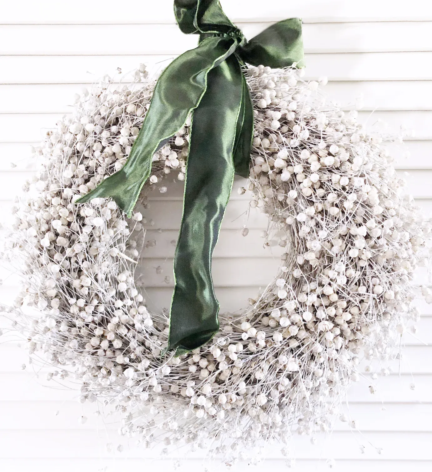 Dieser Kranz ist sehr individuell und was ganz Besonderes. Alles Handarbeit. Die Kränze werden mit den getrockneten Naturfrüchten (Samenkapseln) gebunden und gefärbt. Nutzen Sie den Kranz auf Festtags-Tafel oder auch als Grundlage für einen Dekokranz, zum Frühling, Ostern als Osterkranz oder im Herbst Winter als Türkranz. Wo und wie sie es dekorieren es sind keine Grenzen gesetzt. Ideal zum aufhängen. Probieren Sie es doch mal aus. Ein Deko-Kranz mit natürliche Optik nicht nur für die Osterzeit oder Weihnachtszeit, kann als Wohnaccessoires alle Jahreszeiten genutzt werden. Ob Frühling, Sommer, Herbst oder Winter – dieser Kranz ist ein Hingucker. Eine wunderschöne Schleife drumbinden in der Farbe Ihrer Wahl und schon haben Sie einen tollen Kranz. Die wunderschöne Schleife in dunkelgrün wird mitgeliefert.