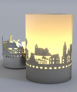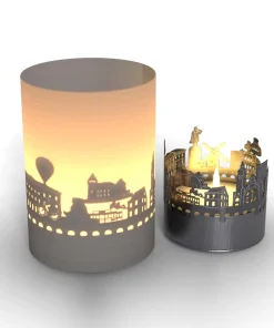 Mit der Krefeld Geschenke-Tube verwandeln Sie jedes Teelicht in einen faszinierenden Blickfang. Genießen Sie die Skyline und die Silhouette von Krefeld auf eine völlig neue Art und Weise. Diese Kerze zeigt Ihnen alle Sehenswürdigkeiten der Stadt, die Sie noch nie zuvor auf diese Weise gesehen haben – Durch das Flackern der Kerze erwacht die Krefeld Skyline Silhouette zum Leben und projiziert die schönsten Bauten als magisches Schattenspiel in den Raum. Mit dem mitgelieferten Projektionsschirm wird das Schattenspiel noch beeindruckender.