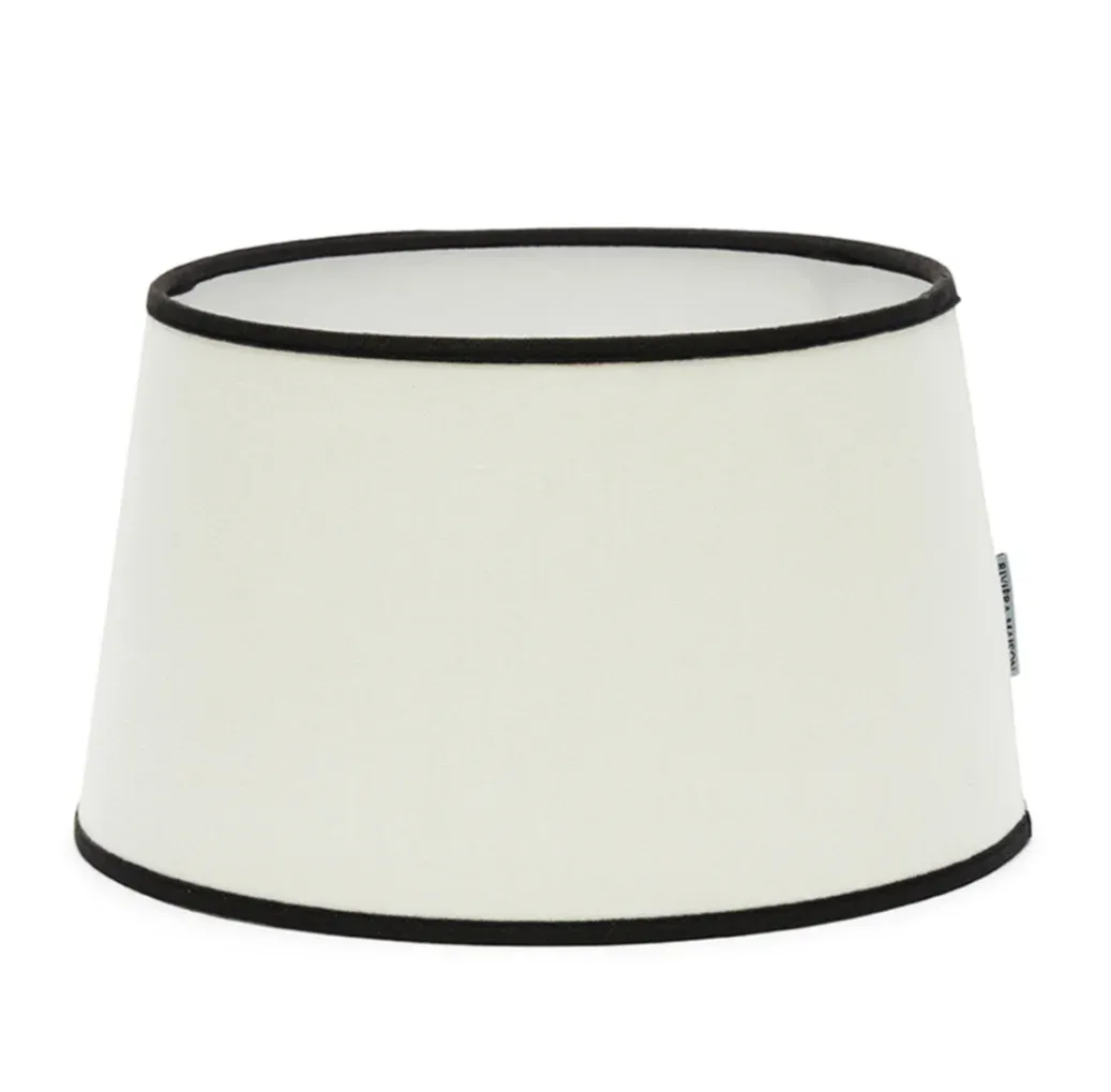 Der RM Leinen Lampenschirm weiß 30×17 cm ist ein weißer Lampenschirm aus Leinen in einer klassischen Form. Der mittelgroße Schirm mit seiner spitz zulaufenden Form passt zu fast jedem Lampenfuß. Das weiße Leinen ist oben und unten mit einem schwarzen Rand versehen. Der Lampenschirm ist auch in anderen Größen und Farben erhältlich. Dieser Lampenschirm sieht sehr edel extravagant aus und läßt sich problemlos in vielen Einrichtungsstilen und mit sehr unterschiedlichen Lampenfüßen kombinieren.