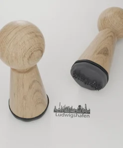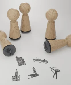 Lieferumfang: Stempelset, bestehend aus 5 verschiedenen Stempeln zum Thema Ludwigshafen. Die Stempel sind aus hochwertigem Buchenholz gefertigt mit einer Höhe von 36mm und einem Durchmesser von 15mm. Das Stempelgummi ist auf einer federnden Schaumstoffschicht montiert.