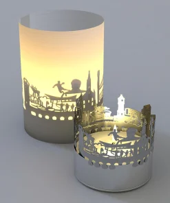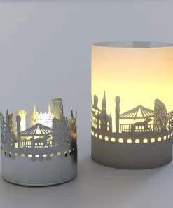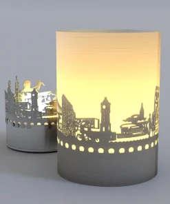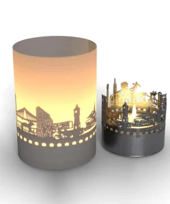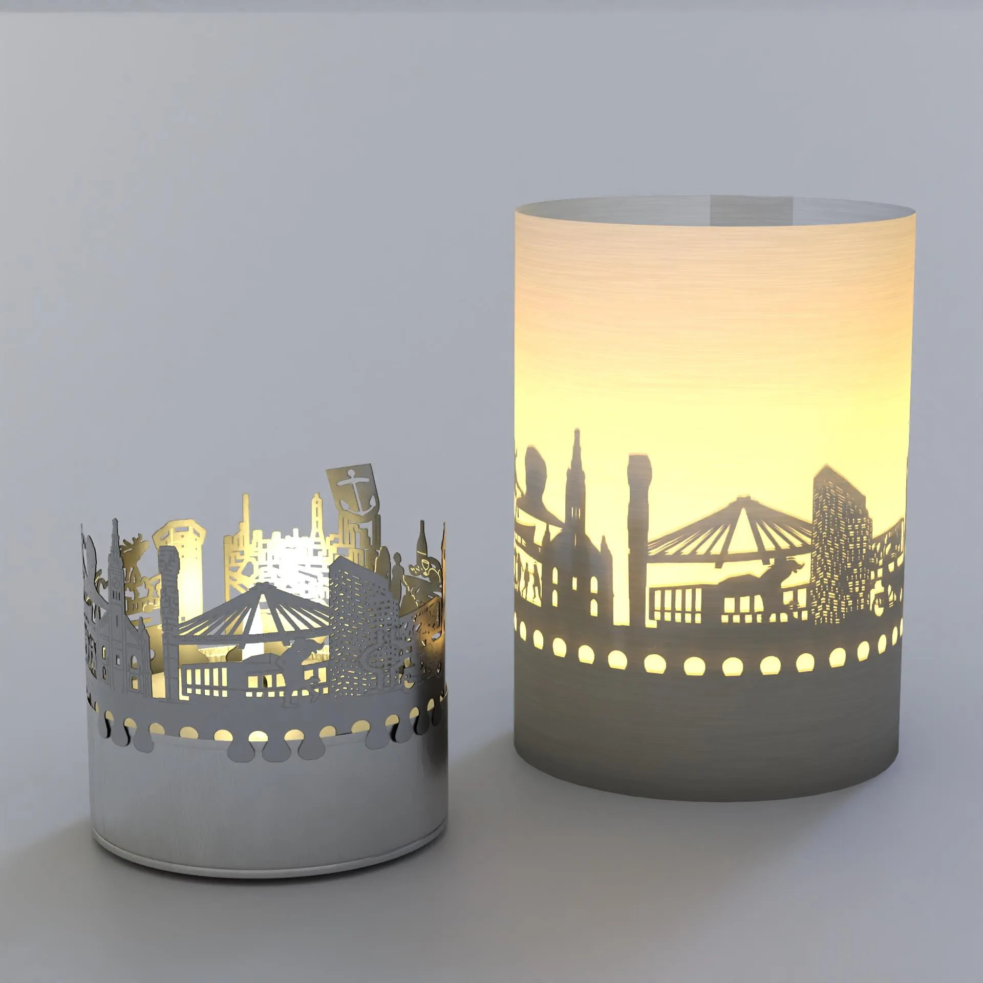 - Die hochwertige Edelstahl-Silhouette wird zusammen mit einem Teelicht und einem Projektionsschirm geliefert, um das Schattenspiel besonders schön zu präsentieren. Mit einer Höhe von 65 mm und einem Durchmesser von 46 mm ist die Motivkerze ein tolles kleines Geschenk oder Andenken für Ludwigshafen-Begeisterte.