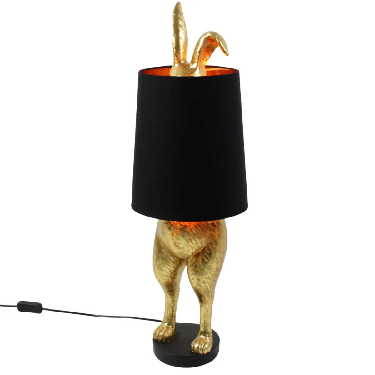 Eine Luxuriöse extravagante Stehlampe Hase Bunny in gold mit edlem schwarzem Schirm 74 cm