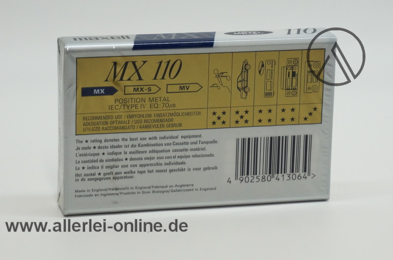 Artikel: Maxell MX 110 | Audio Kassette | Metal Type IV | Music and Voice Leerkassette | NEU/OVP