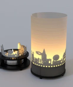 - Die Geschenkbox enthält eine Silhouette aus hochwertigem Edelstahl, einen Projektionsschirm, einen Kerzenhalter und ein Teelicht. Aufgebaut hat das Windlicht eine Höhe von 100mm und einen Durchmesser von 65mm. Die Geschenkbox eignet sich perfekt zum Weiterverschenken an Paderborn-Fans, Reiselustige oder Weltenbummler.