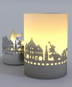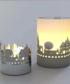 - Die Silhouette wird aus hochwertigem Edelstahl hergestellt und kommt mit einem Teelicht und Projektionsschirm. Die Motivkerze hat eine Höhe von 65 mm und einen Durchmesser von 46 mm. Ein tolles kleines Geschenk oder Andenken für Paderborn-Begeisterte.