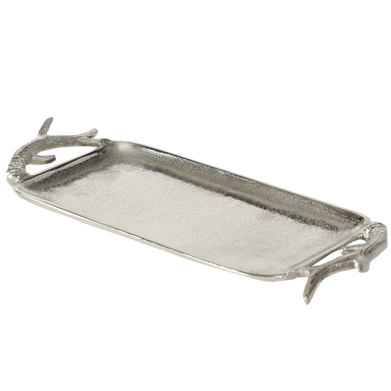 Tablett Hirschgeweih silber Metall länglich 51 cm mit Griff