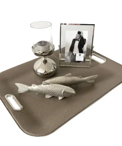 Das edle hochwertige handgefertigte stilvolle Tablett aus hochwertigem Lederimitat in Kroko-Reptiloptik sorgt für glanzvolle Akzente in Ihrer Einrichtung. Hochwertigen Verarbeitung der Nähten an den Kanten, tolle Farben. Die Form des Tabletts modern, edel, luxuriös harmoniert mit vielen Einrichtungsstilen mit Edelstahl Griffen. Ein wunderschönes Wohnaccessoire für Ihr Zuhause. Extravagantes und modernes Design und höchste Qualität machen dieses Tablett zu einem echten Schmuckstück. Sie werden dieses Tablett lieben. Mit einer Größe von 55x40x3 cm bietet Ihnen dieses Dekotablett viel Platz für kreative Ideen. Nicht nur als Serviertablett geeignet. Ein Tablett für viele Anlässe, ideal als Deko-Tablett zum Dekorieren von Wohnaccessoires, aber auch hervorragend zum Servieren von Getränken und Speisen bestens geeignet. Vielen Dank, daß Sie sich für dieses hochwertige Produkt entschieden haben. Dieser Artikel wurde in aufwendiger Handarbeit in Europa hergestellt. Wir wünschen Ihnen viel Freude mit diesem Artikel. Dieses Tablett führen wir auch in vielen verschiedenen anderen Farben.