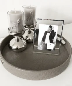Das edle hochwertige handgefertigte stilvolle Tablett aus hochwertigem Lederimitat in Kroko-Reptiloptik sorgt für glanzvolle Akzente in Ihrer Einrichtung. Hochwertigen Verarbeitung der Nähten an den Kanten, tolle Farben. Die Edelstahlgriffe mit der Kombination mit den Kroko-Lederimitat läßt das Tablett noch edler aussehen. Die Form des Tabletts modern, edel, luxuriös harmoniert mit vielen Einrichtungsstilen. Ein wunderschönes Wohnaccessoire für Ihr Zuhause. Extravagantes und modernes Design und höchste Qualität machen dieses Tablett zu einem echten Schmuckstück. Sie werden dieses Tablett lieben. Mit einer Größe von Ø42 cm x 6 cm cm, rund bietet Ihnen dieses Dekotablett viel Platz für kreative Ideen. Nicht nur als Serviertablett geeignet. Ein Tablett für viele Anlässe, ideal als Deko-Tablett zum Dekorieren von Wohnaccessoires, aber auch hervorragend zum Servieren von Getränken und Speisen bestens geeignet. Vielen Dank, daß Sie sich für dieses hochwertige Produkt entschieden haben. Dieser Artikel wurde in aufwendiger Handarbeit in Europa hergestellt. Wir wünschen Ihnen viel Freude mit diesem Artikel. Dieses Tablett führen wir auch in vielen verschiedenen anderen Farben.