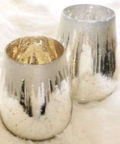 In Bauernsilber-Optik aus Glas silber weiß antik. Dieses Windlicht hat zwei Größen, in 13 cm Höhe. Stimmungsvoll, wie das Kerzenlicht durch das versilberte Glas schimmert. In Eiszapfen Optik für die Winter- und Weihnachtszeit. Ein trendiger Lifestyle für Ihr schönes Zuhause. Dieses Teelicht ist ein wahrer Hingucker auf Tischen, Regalen, Fenstersimsen und Kaminen. Für tolle Tischdekos und ausgefallene Dekorationen für die Weihnachtszeit, ein Traum von Kerzenschein. Passend für handelsübliche Teelichter.