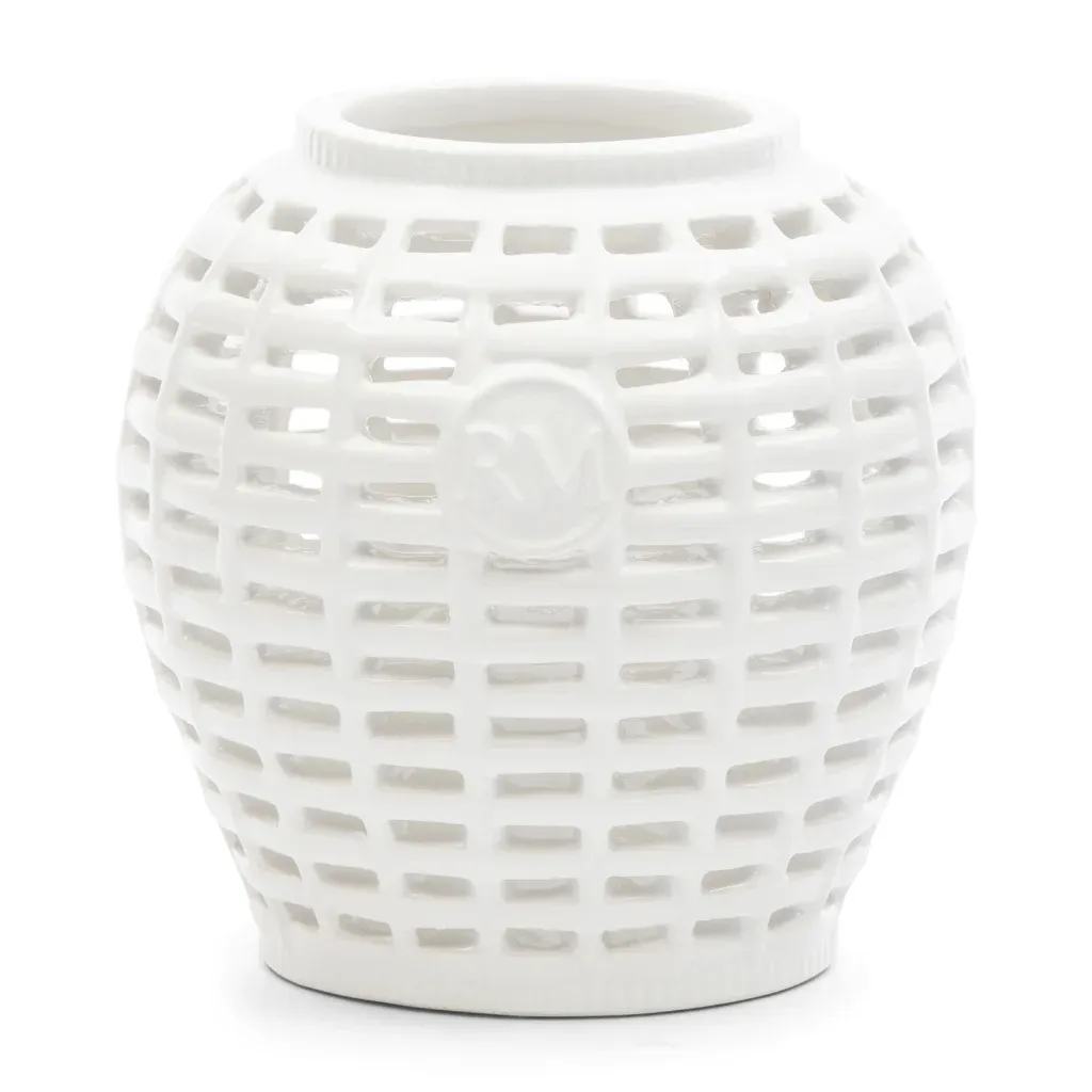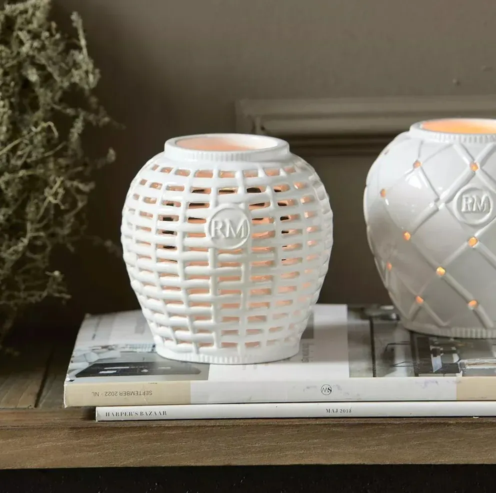 Der RM Leatitia Teelichthalter ist ein wunderschöner Teelichthalter aus weißem Porzellan mit einem einzigartigen Rattanmuster. Er ist eine perfekte Ergänzung für jedes moderne oder ländliche Interieur und lässt sich wunderbar mit dem RM Louane Votive Deckelvase kombinieren. Der RM Knopf vervollständigt den Look!