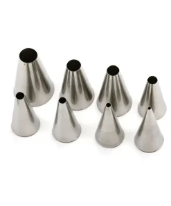 Mit den 3 Tüllen in den Größen 3 (fein), 8 (mittel), 12 (dick) setzen Sie Punkte oder schreiben Sie. Mit den 2 Sterntüllen 16 und 21 stellen Sie Sterne, Muscheln, Zickzacks uvm. her. Mit der Drop-Flower-Tülle (244) kreieren Sie Blumen und mit der Tülle 67 vervollständigen Sie diese Blumen mit Blättern. Mit der Tülle 103 spritzen Sie Blumenblätter, Rosen, Rüschen und andere Dekorationen.