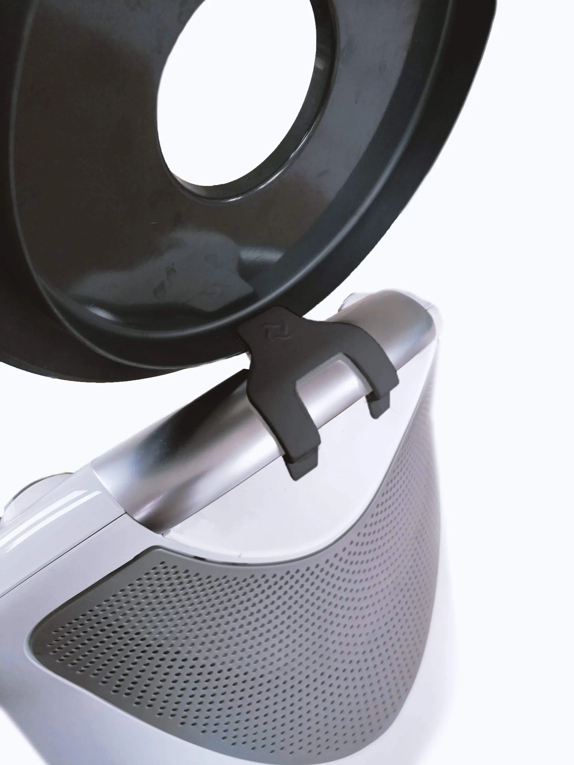 Der Deckelhalter von Wundermix sieht zwar unscheinbar aus, bietet jedoch beim Kochen mit dem Thermomix eine enorme Erleichterung. Einfach den WunderClip Mixtopf-Deckelhalter am Griff deines Thermomix anbringen und den Mixtopfdeckel bei Bedarf in den Clip stecken. So verschwendet der Mixtopfdeckel keinen Platz mehr auf deiner Arbeitsfläche und Flüssigkeiten am Deckelinneren tropfen direkt vom Deckel zurück in den Mixtopf, ohne eine Sauerei auf der Arbeitsplatte zu hinterlassen.